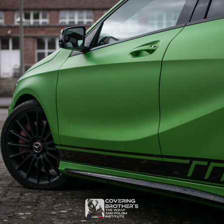 Quelle meilleure couleur que celle de la AMG GTR pour cette A45 AMG ? Total covering avec pose de la bande Edition One parce que oui, c'est une Edition One...