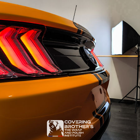 "Elle est orange avec des bandes noires, je veux qu'elle devienne orange avec des bandes noires". Cette phrase n'a jamais été prononcée par notre client qui a pourtant fait ce choix. La peinture d'origine est donc protégée par ce covering qui semble ne pas être là...