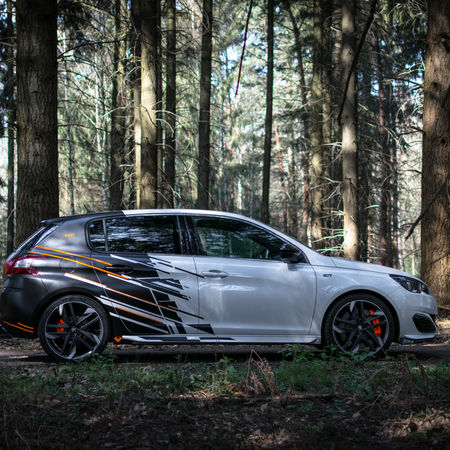 "Une déco que je ne souhaite pas voir ailleurs..." La consigne était donnée. Le propriétaire de cette 308 GTI nous a laissé beaucoup de libertés pour son projet et le résultat lui a énormément plu ! Un beau projet sur mesure... Covering partiel en noir satin et orange gloss sans oublier une mise en peinture des étriers de frein en orange fluo.