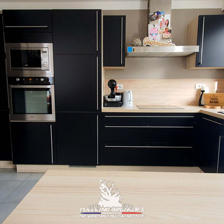 Cette cuisine est passée de gris à noir mat comme vous pouvez le constater sur ces photos.